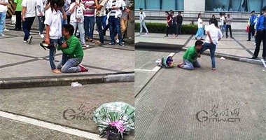 اشتعلت مواقع التواصل الاجتماعى بالعديد من الصور لشاب صينى يعترف بحبه لفتاة بطريقة غريبة، حيث انحنى على ركبتيه فى الأرض وأمسك برجليها وكأنه يتوسل إليها، مما أدى إلى تجمهر المارة من حوله، والتقاطهم للعديد من الصور لهذا المشهد غير المعتاد.